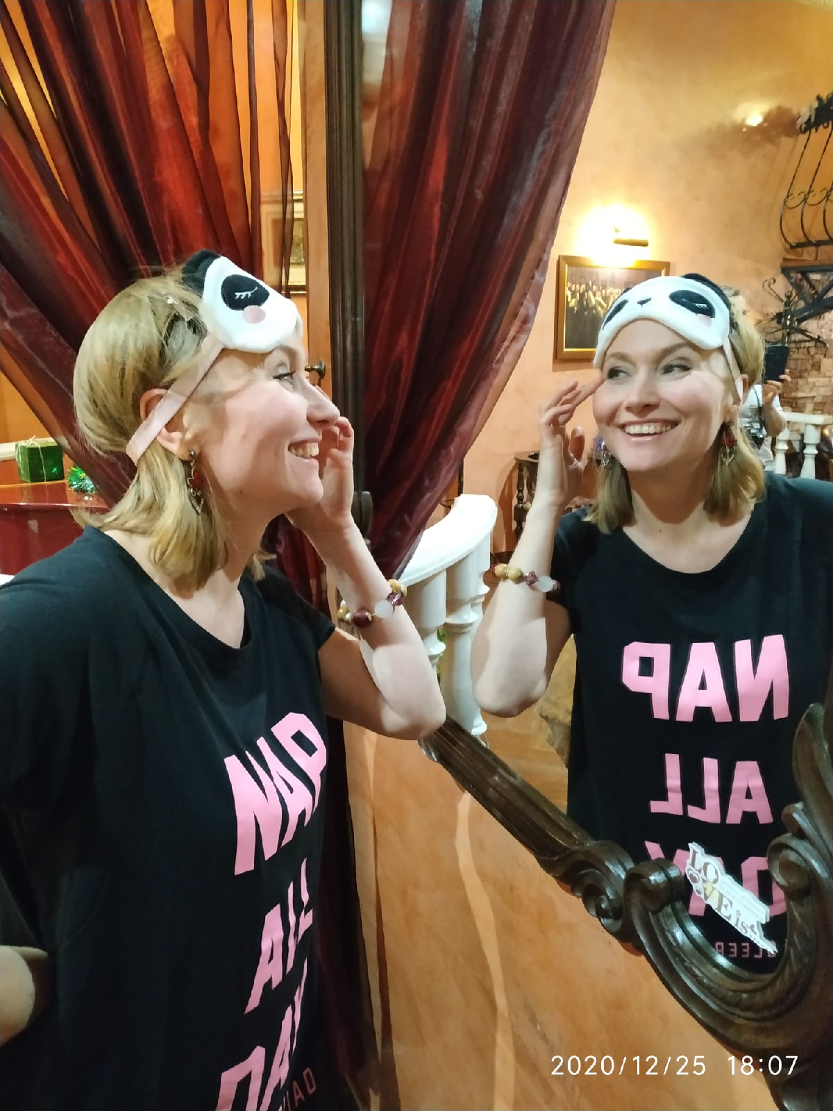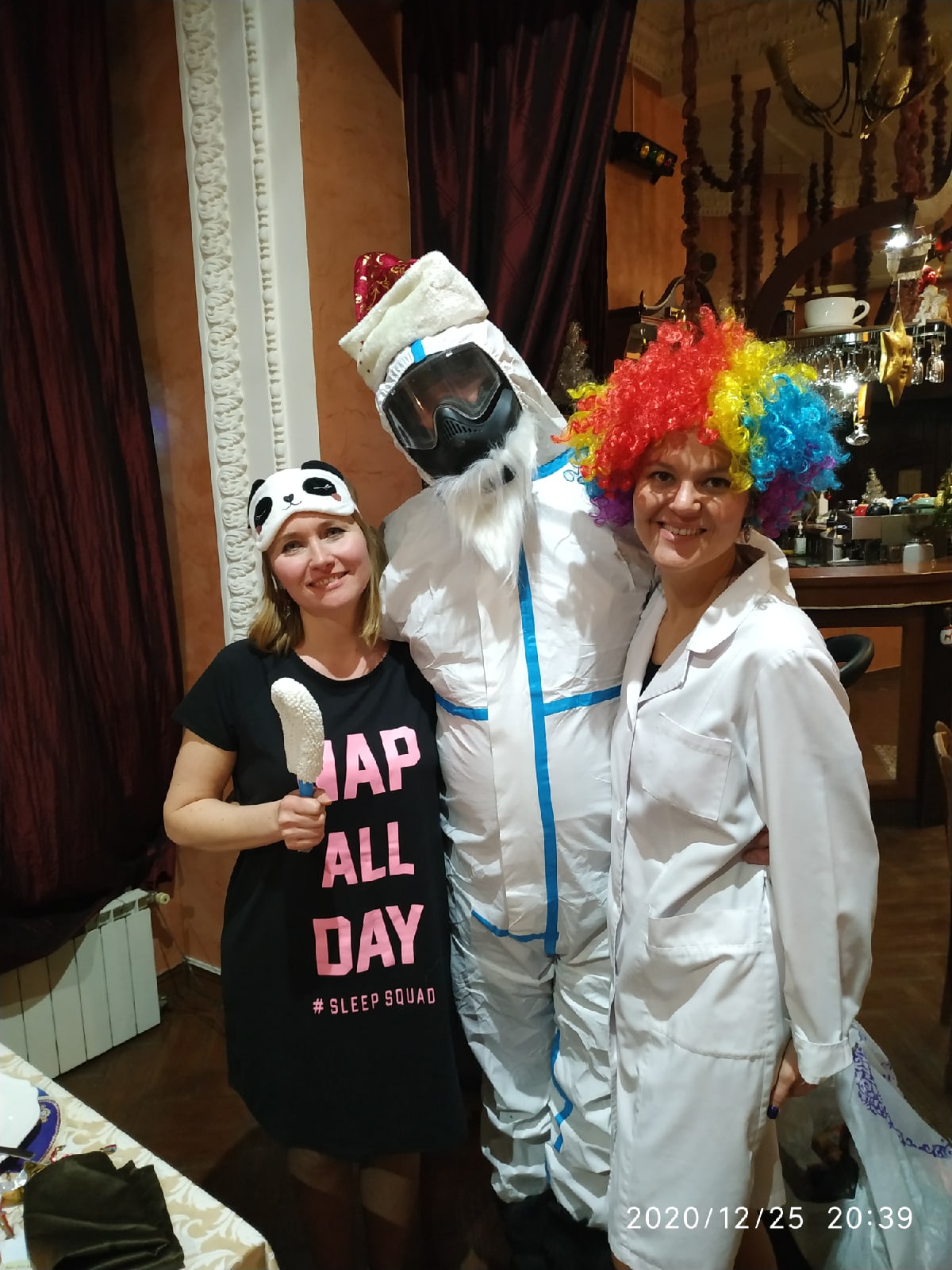 Чего только не было на нашем празднике!!! Профессор, спасающий человечество от бесконтактного общения, антиковидный Дедушка мороз в настоящем скафандре, в защитной маске, с бородой и морем подарков, вечернее платье в виде пижамы. И даже вирус приходил в виде китайского мужчины. Было много, много смеха и грусти. Много включенности, творчества, доверия, тепла и принятия. Глубоко и легко одновременно. Ощущение наполненности и желание делиться такое послевкусие после праздника. С благодарностью к присутствующим и отсутствующим участникам! Я рада, что я была с вами! Я счастлива, что вы были со мной.