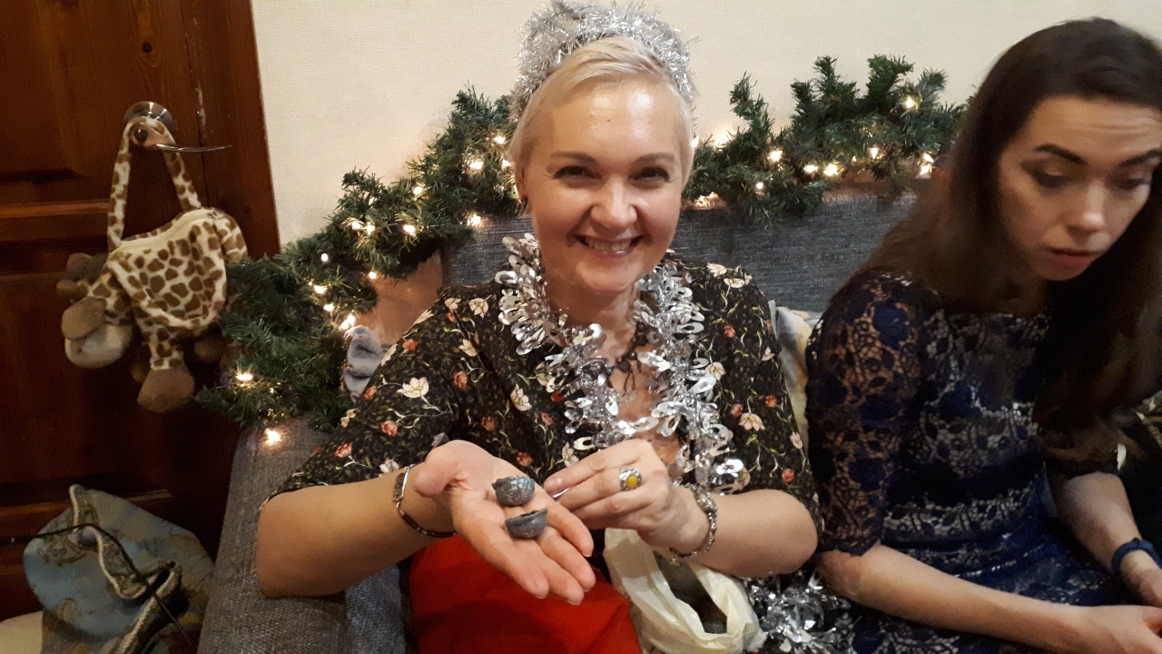 Как оказалось, в Дании есть целый институт исследования того, что делает людей счастливыми. И философия, которая позволяет создать атмосферу покоя, тепла и дружелюбия- Хюгге, которая заключается не в вещах, а в ощущениях. Для меня это удивительным образом соединилось с философией гештальта, где ведущая роль принадлежит феноменологии и умению терапевта создавать особую атмосферу в контакте и теми важными "мелочами", которые дарят уютную близость. Это и стало основой нашей новогодней Хюгге-вечеринки в Гештальт клубе: свечи, ёлка, бабушкин коврик в стиле пэчворк,ароматные апельсины-ежики с гвоздикой вместо иголок, светящаяся хвойная композиция и красавицы-ведущие: Зима,Метелица, Баба-Яга и Хозяйка волшебной гештальт- горы. Хюгге- это ситуации, наполненные взаимной заботой и при подготовке вечера гости принимали активное участие: принесли любимые блюда, накрывали и сервировали стол, включались постепенно и неспешно в общее действо, которое началось с ароматного глинтвейна и еды, которую хотелось вкушать, не торопясь. Была здесь и сырная тарелка с орехами и заморским джемом, и красная рыба, и любимое многими мясцо, и всевозможные овощи-фрукты..и торт, а куда ж без него? А когда прониклись теплом, едой и принятием, тут и сказочные героев стали примерять и осознавать, так ли случайно досталась роль.. Особенно запомнилось, как трогательно было слышать про то, что приносит счастье :мгновения с отцом в глубоком детстве, когда идёшь с ним за руку в детсад, а снежинки падают, поездки в лес и горы, творчество и музыка, любимое дело..каждый из нас стал богаче на счастье тех, кто делился и проживал это прямо сейчас..Расходились неохотно, заполночь, с волшебными дарами-самоцветами, что сами пожелали себе в следующем году, орехами-предсказаниями, любовно приготовленными Метелицей и ощущением Хюгге. Во многом это похоже на теплое объятие, только без физического контакта. Это ситуация, в которой можно расслабиться и быть Самим Собой. Моя благодарность девочкам, поддержавшим идею праздника, за совместность и творчество: Ирине Мироновой, Светлане Пестряковой, Елене Пшибес и нашим дорогим гостям - за доверие, открытость и удовольствие))